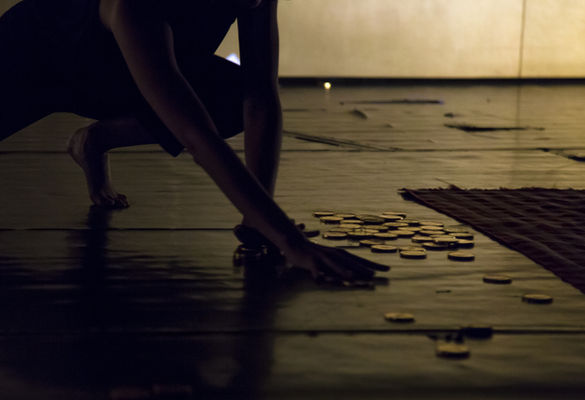 Esta pieza explora el vínculo histórico, cultural y simbólico entre las mujeres y el dinero como valor de cambio. Inspirada en estudios de antropología social, este performance aborda una particular representación del género femenino reflexionando sobre la "evolución" entre los conceptos de producto y propiedad. P U E R C O presenta un ritual de transformación que se vincula con la tradición mexicana del bolo, en el que se celebra el nacimiento de una persona lanzando monedas.